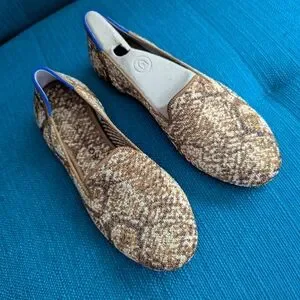 Like new! Cream, brown, yellow, and metallic gold color way. Only worn to try on. I lost the other cardboard insert. Tagged size 7.