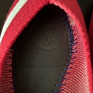 Super unicorn! Red line Rothy’s points size 7.0. Very good used condition. Uppers are in excellent condition. Moleskin on right shoe is pulling slightly. Will ship with shoe trees.