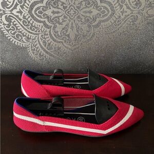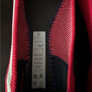 Super unicorn! Red line Rothy’s points size 7.0. Very good used condition. Uppers are in excellent condition. Moleskin on right shoe is pulling slightly. Will ship with shoe trees.
