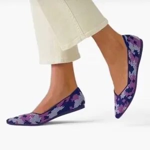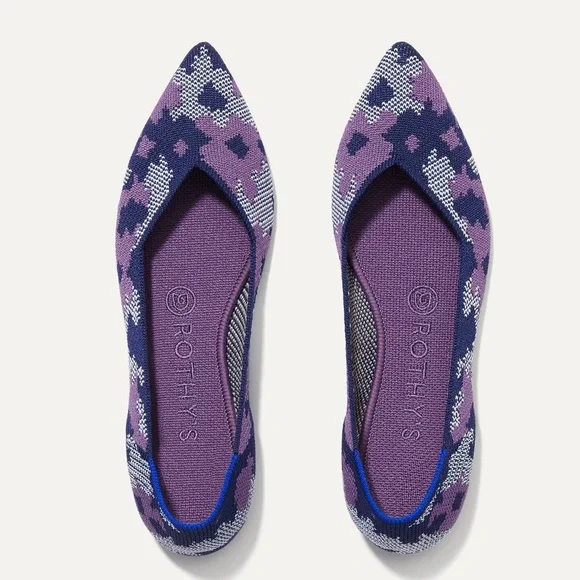 RARE Rothy's The Point RETIRED Violet Botanicamo Purple Pansie Flat Shoes