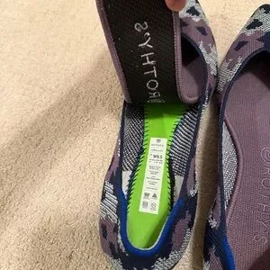 Rothy's Tip: Customers with feet wider than a B width often order half a size up in this style. The shoes are fully machine washable. Slip out insoles. Pop shoes and insoles into the washing machine.
