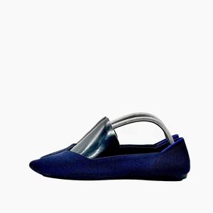Available in US shoe size 7.5, UK size 8, and AU size 10.5, these pre-owned shoes are in great condition and have a solid pattern with blue, stitch, and pebbles character. The insole is made of synthetic material and the lining is fabric. These Rothy's flats are not vintage and are customized.