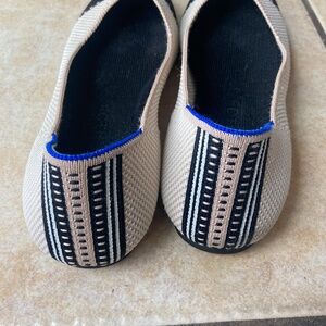 Great condition! Size 7 Rothys, style The Square, color Tuxedo. See pics for condition, the only wear I notice is on the back of the insole (removable and replaceable if needed). I've cleaned and air-dried according to the instructions on the Rothys website.