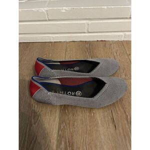 Rothy’s Size 8 Shale Cherry Ribbon Stripe Ballet Flats Retired Round Toe