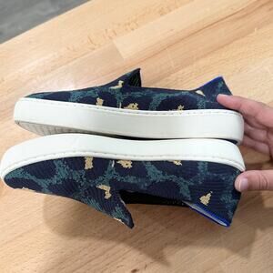 Rothy's Slip On Blue Spot Leopard Cheetah Print Sneakers Navy size 5