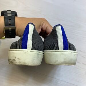 Rothy's THE SNEAKER Recycled Gray Knit Slip On Loafers 8.5 Blue Stripe
