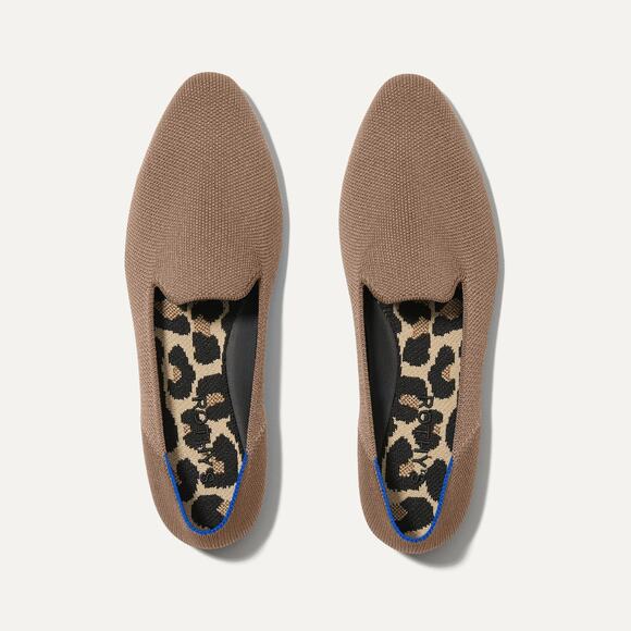 Stylish tan slippers with leopard print interior. Comfortable and chic design.