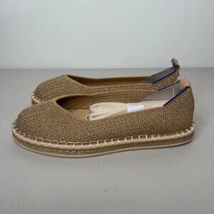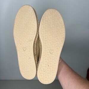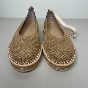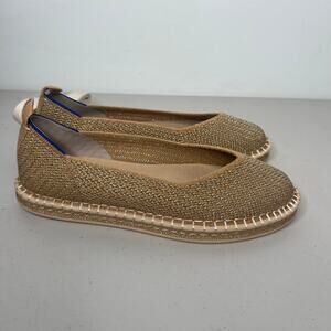 Rothys Tan Metallic Gold Stripe Ballet Ankle Lace Wrap Up Flats 8.5