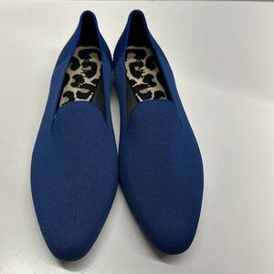 Rothy’s The Almond Loafer Slip On Washable Ballet Flats Azure Blue Cheetah 10.5