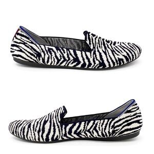 Rothy’s The Almond Loafer Zebra Print Navy Blue & White Size 10.5 EUC