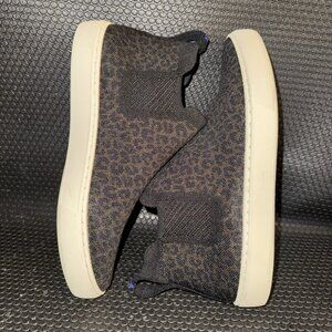 Rothy’s The Chelsea Leopard Print Ankle Boot Hi Top Sneaker Slip On Size 8.5