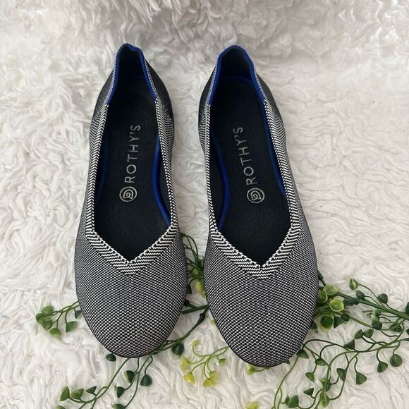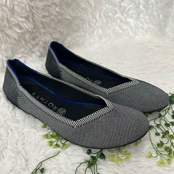 Rothy's The Flat Cloud Grey Black Blue Birdseye Round Toe US Size 10 Womens