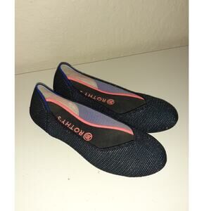 Rothy's The Flat Navy Blue Metallic Knit Ballet Flats Comfort size 8.5 EUC