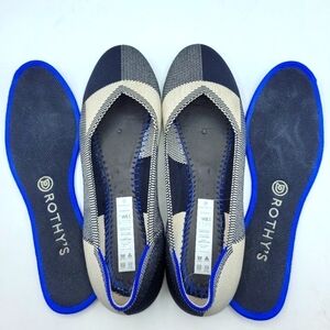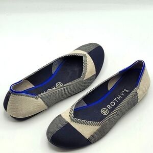 Rothy's The Flat Round Cap Toe Black and Cream Plaid Retired Pattern Size 8.5
