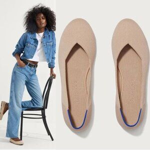 Rothy's The Flat Round Toe Knit Ballet Flats Shoes Size 9.5 Ecru Beige NEW
