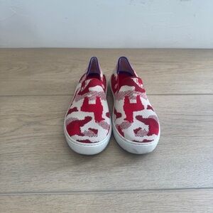 Rothy's The Kid Red Llama Camo Slip On Comfort Sneaker Unisex Size 4