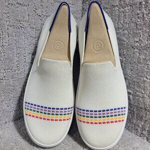 Rothy's The Kid White Rainbow Knit Slip On Sneaker Shoes Big Girl's Size 4 US