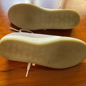 Gently used with minor snag on front right toe. Size is 9. Color is Vintage Gray.
