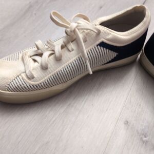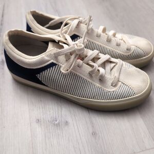 Rothy’s The Lace Up Sneaker Shoes Women's Size 8 Navy Blue & Cream $165 Rothys