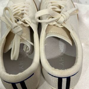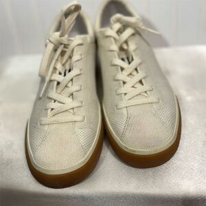Rothy’s lace-up sneakers, women’s size 8 cream knit shoes, sustainable washable sneakers, eco-friendly casual shoes, gum sole trainers, minimalist style