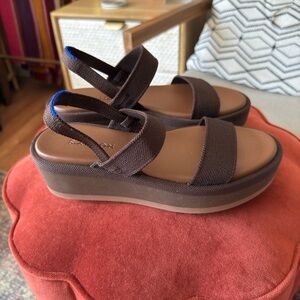 New and only worn to try on inside, this platform sandal features a lightweight midsole and buckle-free straps for an ultra-comfortable style you can dress up or down.