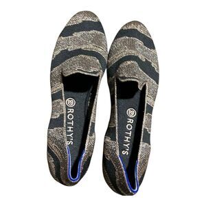 Rothys The Loafer WMNS 12.5 Golden Shimmer Slip on Flats Black Festive Party Date Night Out Event Striped