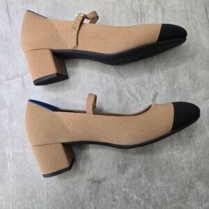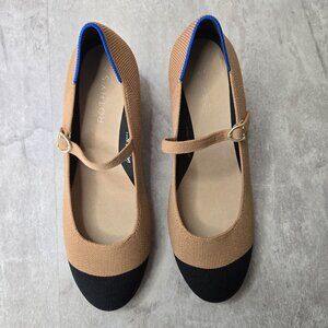 Rothy's The Mary Jane Heel Tan Black Stretch Knit Shoes Minimalist Ballet Pump (D5-029)
