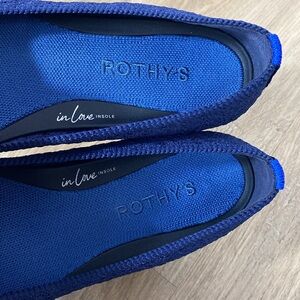 Experience the perfect blend of style and comfort with Rothy's blue flats. These shoes feature a breathable woven pattern and a classic silhouette, making them ideal for everyday wear. Crafted from sustainable materials, they offer a versatile and elegant look.