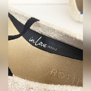 This ballet flat is the in look! I love the square toe and tweed like fabric. Wear with an all white and cream outfit or jeans for a quiet lux feel. Great condition a few scuffs and over good clean with not much wear. Has a special super cushy in-sole. Questions? Leave a comment below!