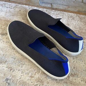 Rothy’s The Original Slip On Sneaker Black Knit White Sole Shoe Loafers: 8