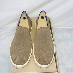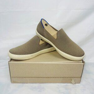 These versatile slip-on sneakers by Rothy's feature a sustainable knit design in a neutral taupe tone. Ideal for casual or business-casual settings, they provide comfort and style. Crafted with eco-friendly materials, they reflect a commitment to both fashion and environmental responsibility.