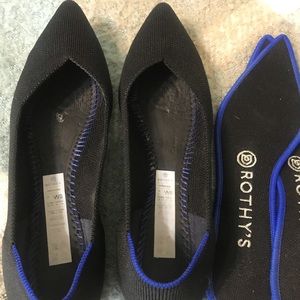 Black Rothy’s with tons of life left in them. The Point seems to fit slightly smaller than the ballet flat. Size 8 and in excellent condition.