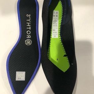 Rothy’s The Point Black Solid…The one shoe that elevates any outfit anytime. The sleek pointed-toe flat in black combines exceptional comfort with versatile, washable style….Details soft, flexible upper in black-which means no break-in period ever…comfortable insoles and durable outsoles in black…fully machine washable, so it’s like new again and again.