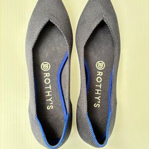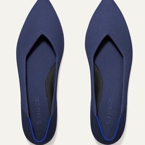 Rothy's The Point flat. Dark blue with lighter blue trim at the heel, Size 7 but feels like more a 6 - 6.5. Rothy's run small know your size. Brand new. no box.