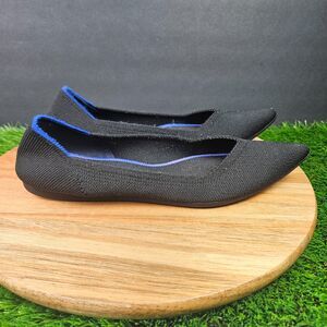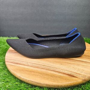 Rothys The Point Flat Womens 9 Black Pointed Knit Travel Shoe Slip On Comfort