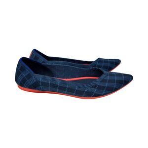 Rothy’s The Point Flats Navy Check Knit Blue Red Sole Women’s Size 8 Shoes