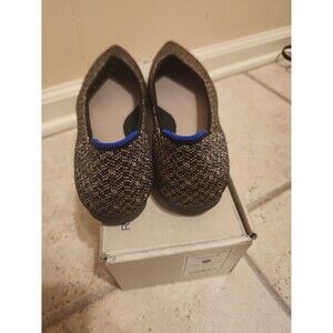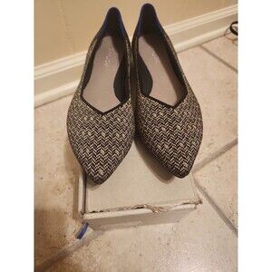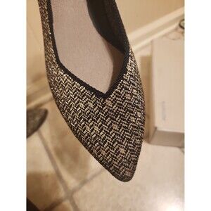 Rothy's "The Point" Flats in "Sparkle Herringbone" Black & Gold Size 10.5