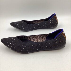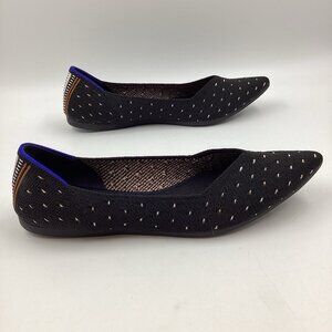 Rothy's The Point Ivory Dot Black Polka Dot Knit Ballet Flats Shoes Size 8