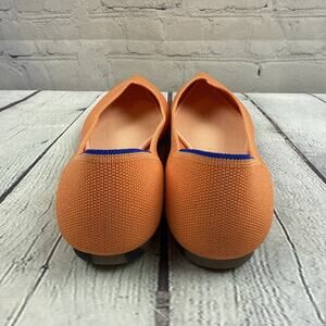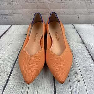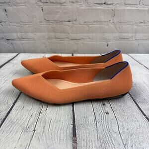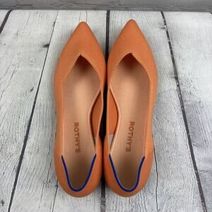 The Rothy's The Point Peach Knit Slip On Pointy Toe Women's Slip On Flats in size 9.5 are stylish and comfortable flats perfect for various occasions. Featuring a pointed toe design and slip-on closure, these orange flats are ideal for travel, parties, or casual outings. Made with breathable knit fabric and a synthetic lining, these flats offer a comfortable fit for all-day wear. The synthetic upper and insole materials ensure durability and easy maintenance, making them a practical choice for style-conscious women. Perfect for the summer and spring seasons, these flats are a must-have addition to any shoe collection.