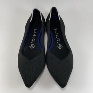 Rothy’s The Point Pointed Toe Flats Womens Size 6.5 Black Ballet White Stripe