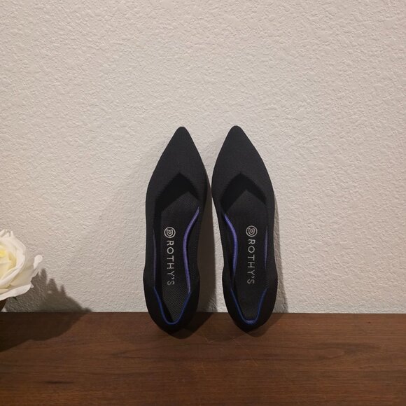 Rothys - The Point - pointed black flats Sz 9.5. Excellent, pre-owned condition.