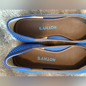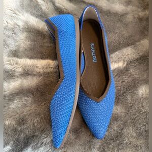 ROTHY’S “The Point” flat in blue and black fleck. Excellent condition and never worn. Stretchy woven fabric and removable washable insole.