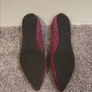 Experience the elegance of Rothy's pink flats, crafted with a sophisticated woven texture that enhances their classic silhouette. These flats are designed for comfort and style, featuring a flat sole perfect for all-day wear. The vibrant pink color adds a pop of color to any outfit, making them ideal for both casual and evening occasions.