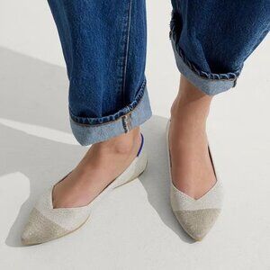 Keywords: Rothy's, The Flat, Ballet Flats, Knit Shoes, Shimmer Flats, Blue Trim, Comfortable Flats, Sustainable Shoes, Recycled Material, Washable Flats, Business Casual, Office Career Wear, day, night, comfort