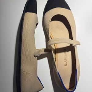 Step into effortless style with these Rothy’s Square Mary Jane flats, designed with both comfort and sustainability in mind. Featuring a cream body with a contrasting black cap toe and subtle blue trim detail, these shoes bring a modern twist to a timeless silhouette. The adjustable strap adds a classic Mary Jane touch, while the square toe ensures all-day comfort.