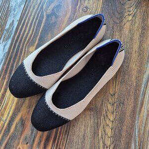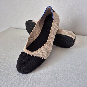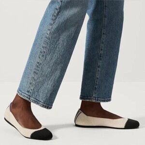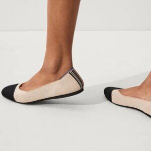 Rothy’s The Square Tuxedo Cream Cap Toe Ballet Flats Slip-On Comfort