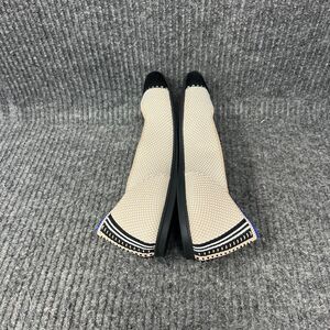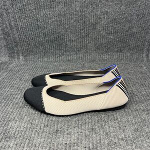 Rothy’s The Squre Flats Tuxedo CapToe Cream Black Ballet Knit Slip On Women’s 7