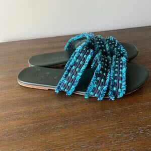 Rothy’s Woman’s Teal Blue Print Slip On Fringe Triple Band Sandal- Size 8.5 - Woven fringe detail - Slip on Closure - Textile Upper - Rubber Sole - Overall great condition- The front of one show has a worn spot, but it isn’t dirty. There are photos - See wear and condition in photos - Item in photos is exactly what you will receive - Smoke free environment * accepting reasonable offers * please follow for daily updates Casual, lightweight, breathable, classy, comfortable, summer, spring, causal