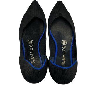 Rothy's Women Point Black Ecru Knit Fabric Size 9 Slip On Ballet Flats Classic