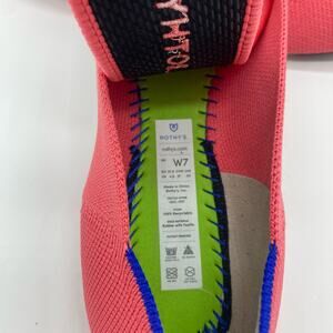 Rothy's Women size 7 The Flat Pink Grapefruit Slip On Ballet Flats Comfort Easy. Rothy's brand women's ballet flats in a size 7. Style is The Flat, Rothy's classic easy comfort flats. Colorway is Pink Grapefruit, pink with blue trim. Rounded toe. In great pre-owned condition, see photos for more details. Always feel free to ask any questions you may have! Reasonable offers accepted.